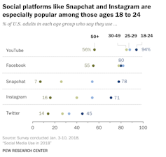 Instagram and Snapchat, by contrast, are strongly focused on image sharing. Sharing text or links or facilitating discussion are not easy to do on those platforms. While news and current events are featured on their services, they do not have a central role.